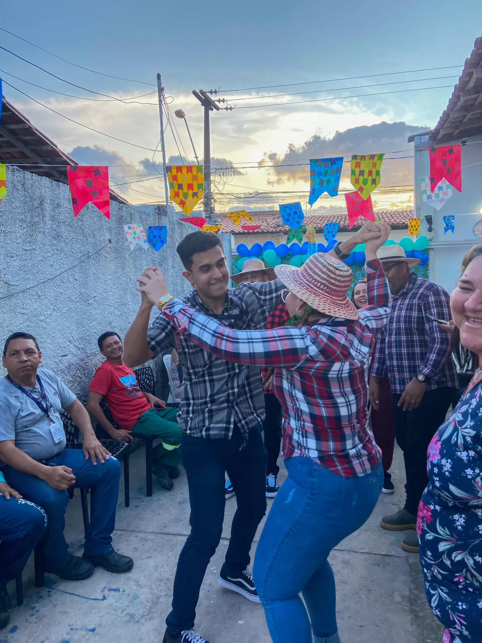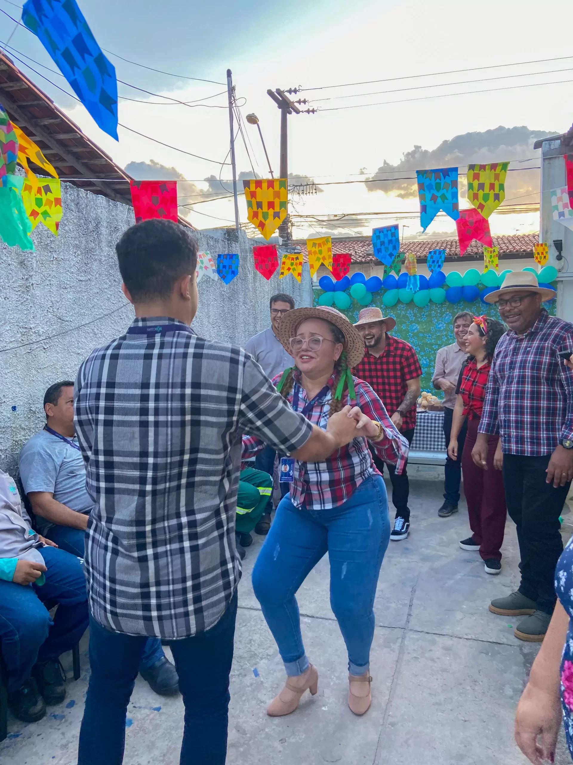 O local foi cuidadosamente decorado com bandeirinhas, balões e toalhas xadrez, criando um ambiente típico de festa junina. E nenhum arraial estaria completo sem as deliciosas comidas e bebidas típicas. Oferecemos uma variedade de opções, tudo foi preparado com muito carinho para garantir que nossos colaboradores tivessem uma experiência gastronômica autêntica e saborosa, e também com músicas e brincadeiras tipícas do período junino.